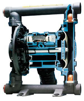 氣動(dòng)雙隔膜泵的特點(diǎn)和單隔膜泵的類似,只不過雙隔膜泵指雙吸液腔,單隔膜泵就一個(gè)吸液腔。但是,隔膜泵壓力無法提高,被氣源壓力限制。隔膜泵流量通常不會(huì)太大,多數(shù)應(yīng)用在小系統(tǒng)中。跟傳統(tǒng)用在大流量的離心泵還是有使用場合上的不同。